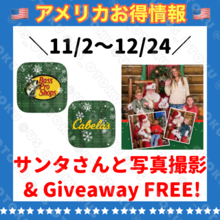 11/2~12/24まで Bass Pro Shopsでサンタさんと写真撮影イベント無料